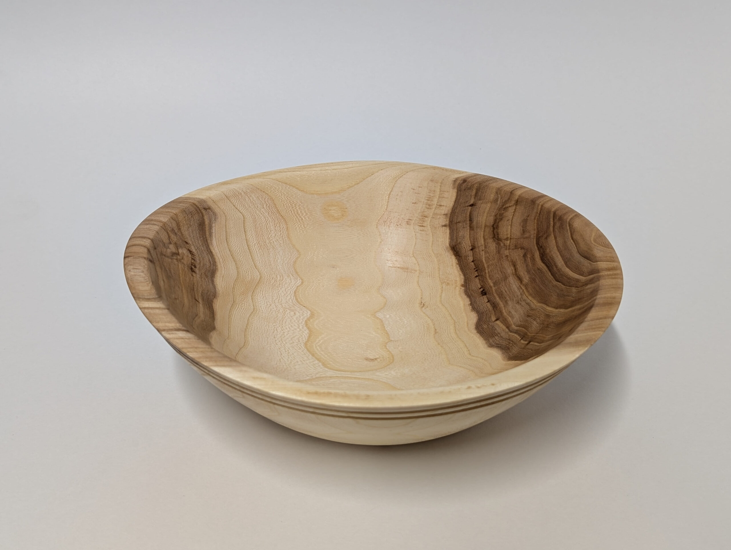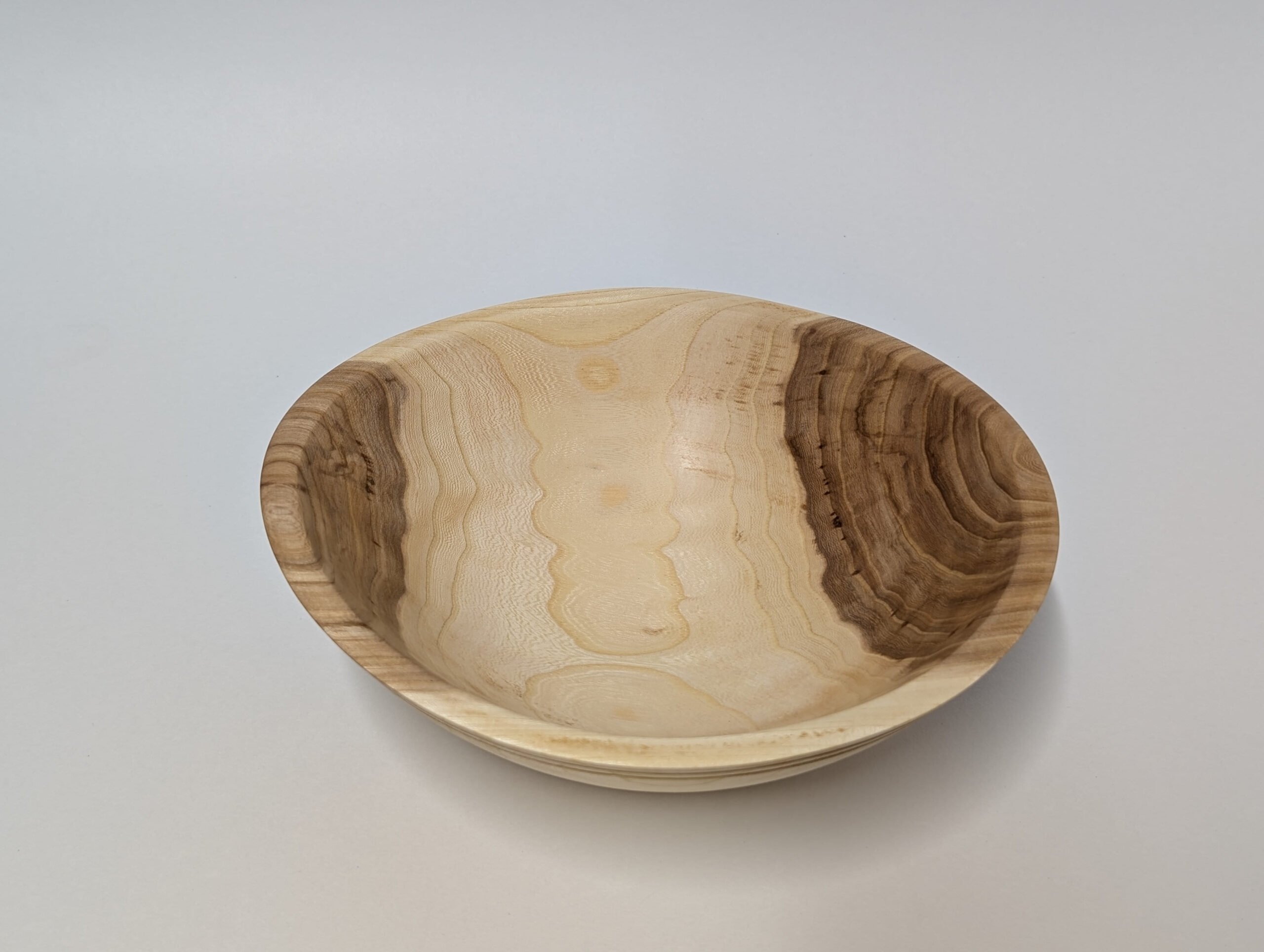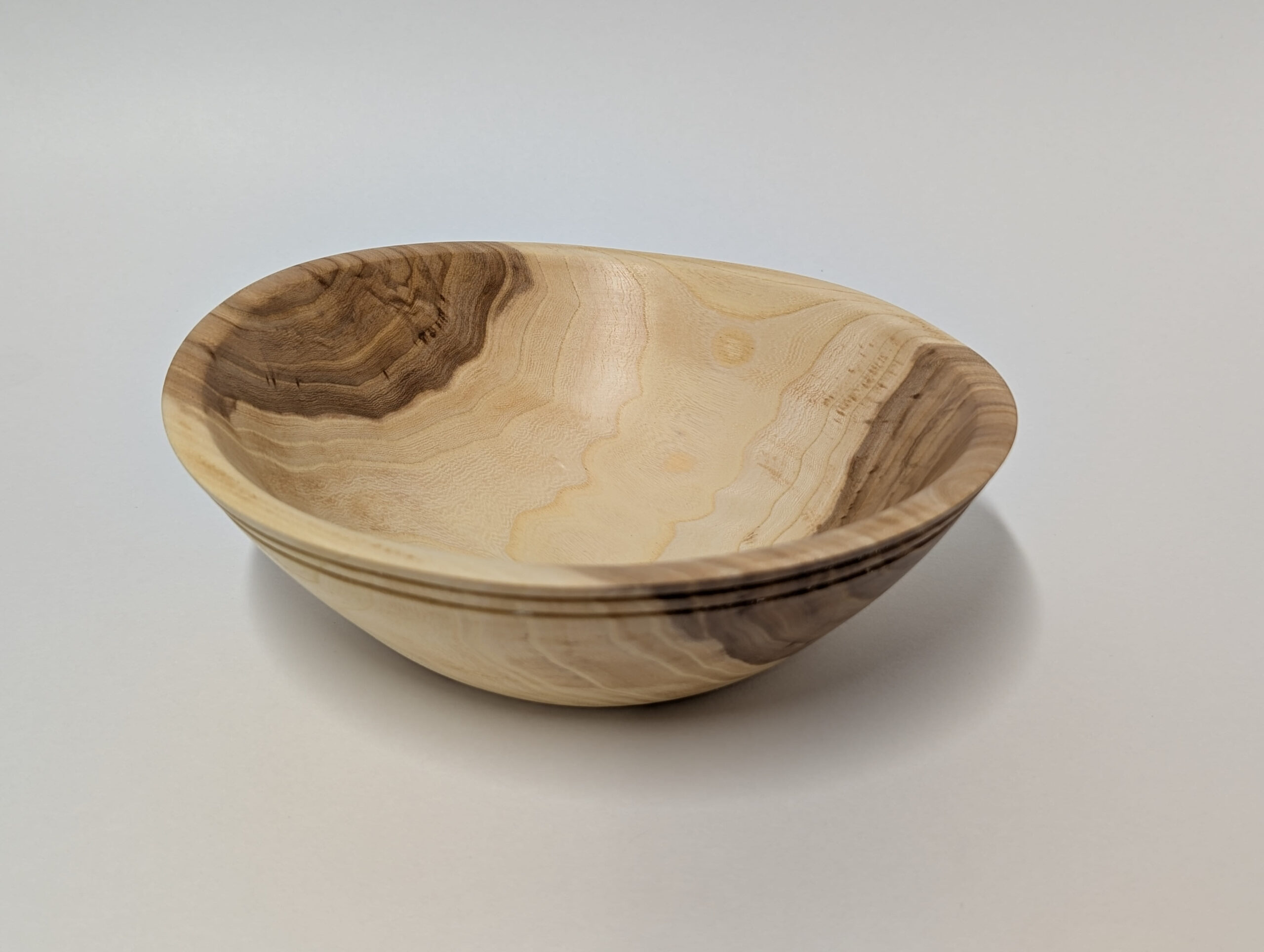 Elm wood bowl. Dimensions: Approximately 7.75 inches in diameter, and 2.25 inches in height.
