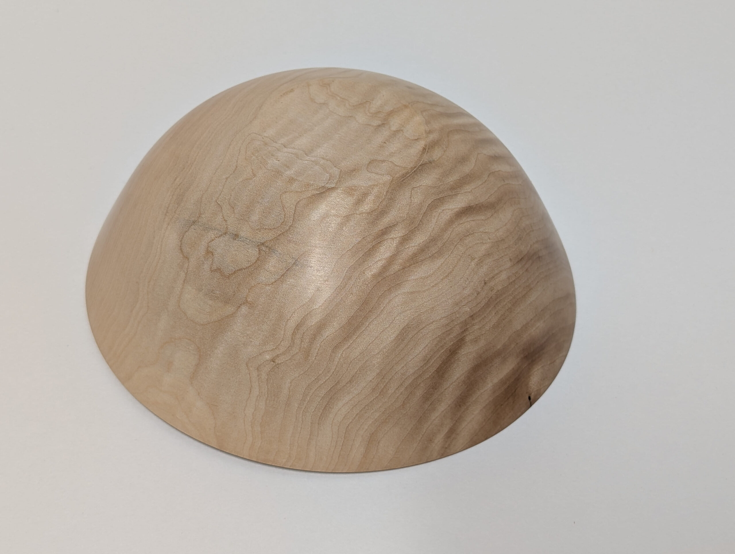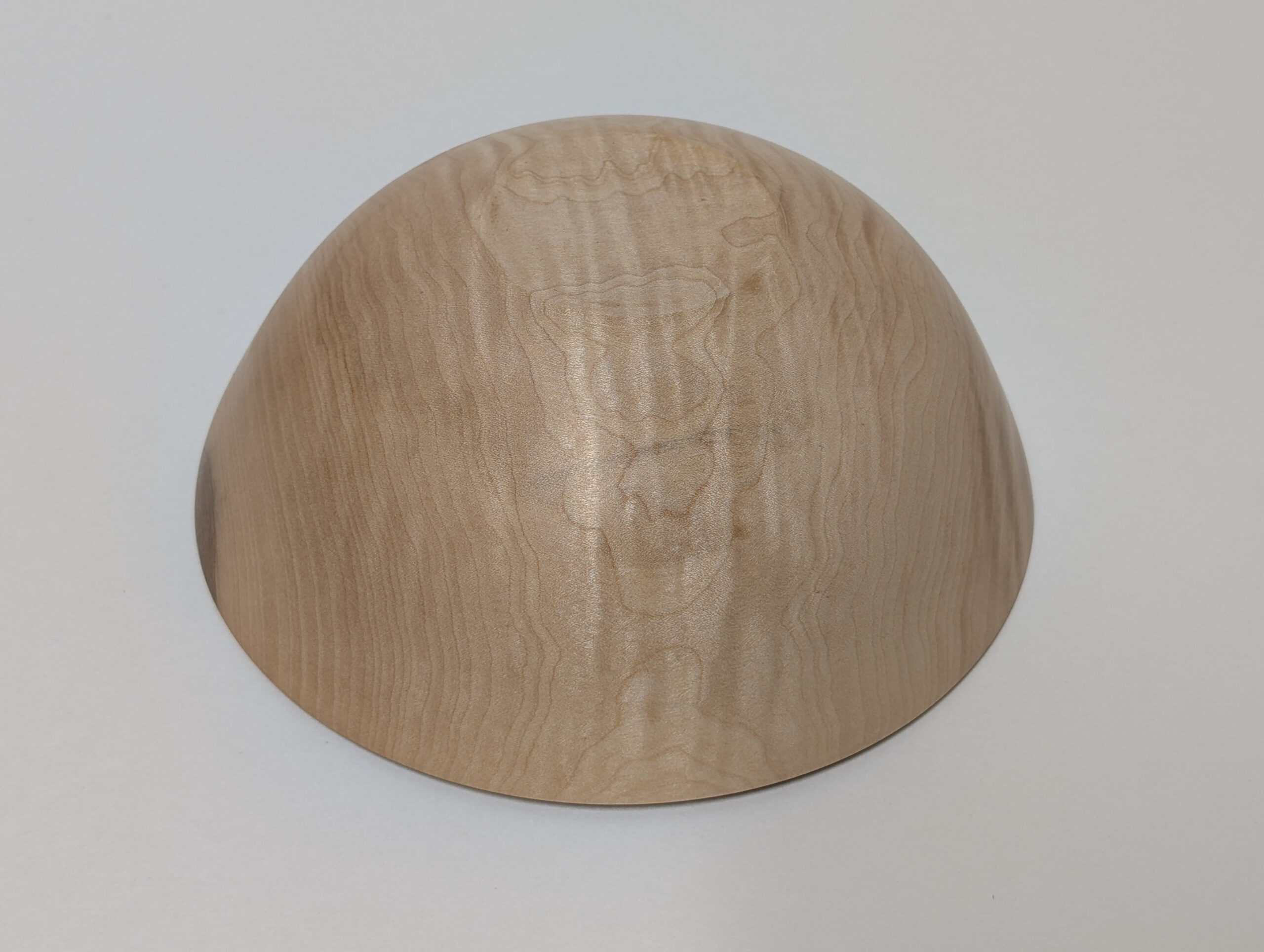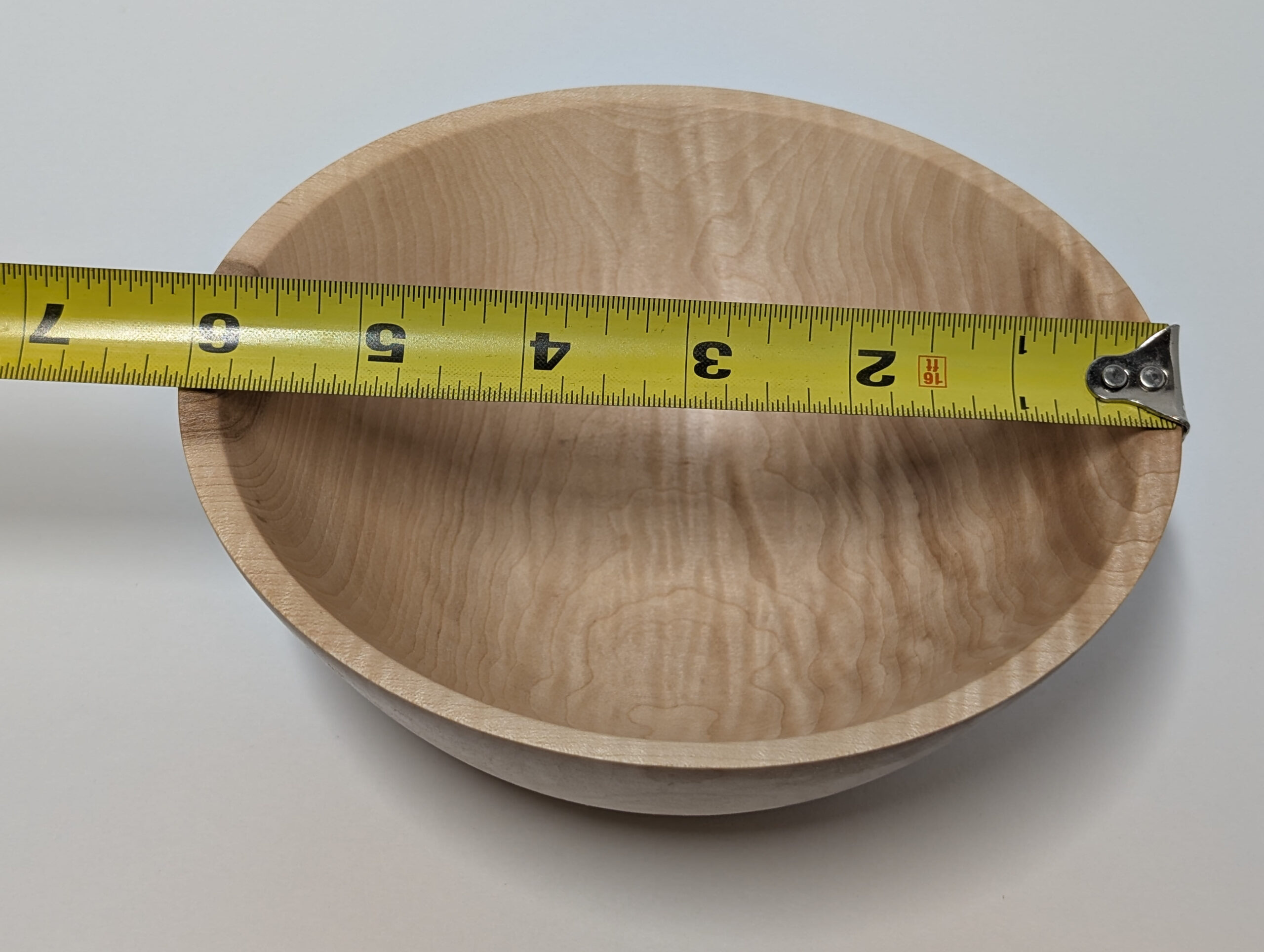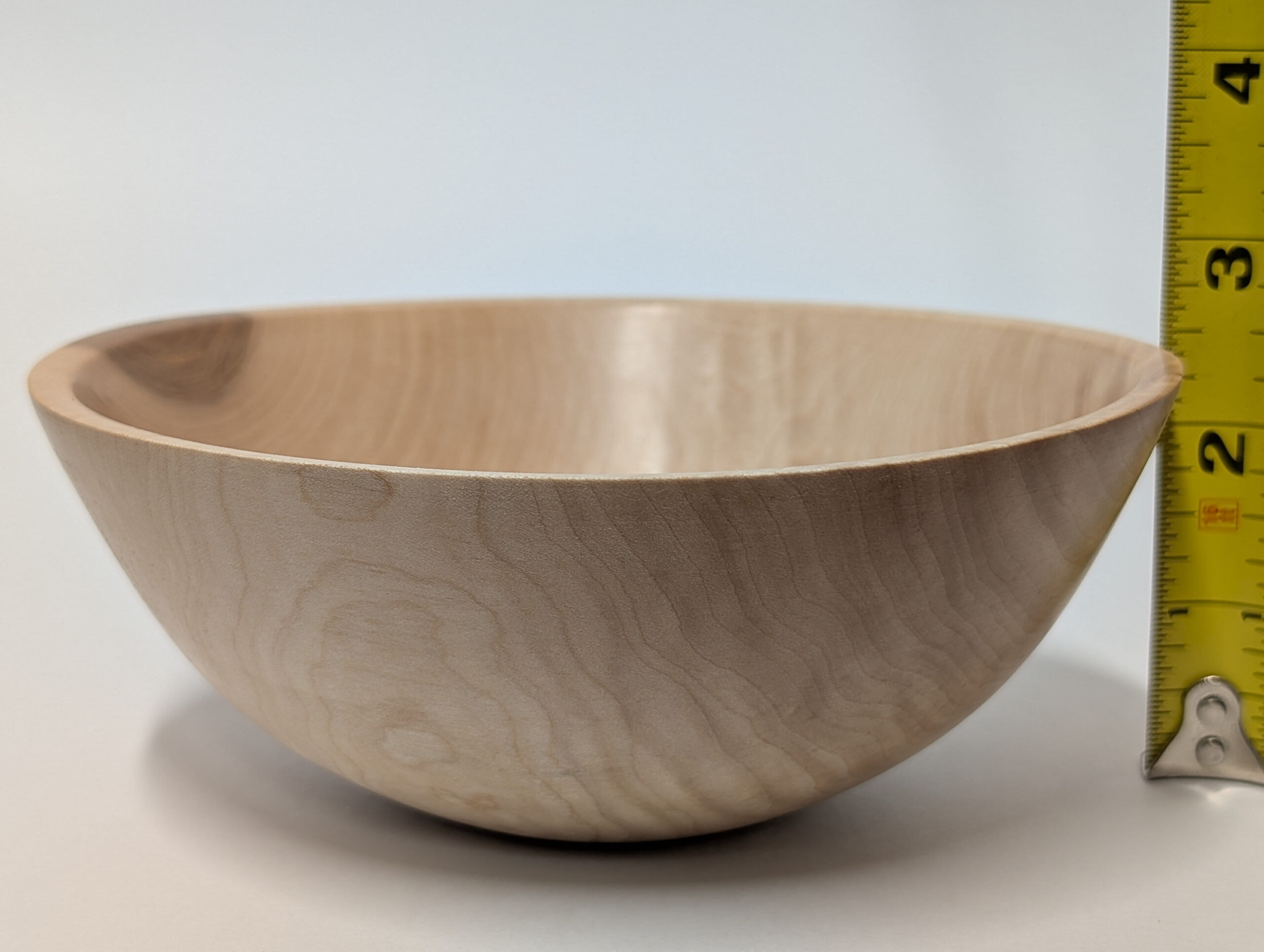 Maple wood bowl. Dimensions: Approximately 5.875 inches in diameter, and 2.375 inches in height. Finished with walnut oil and carnauba wax.
