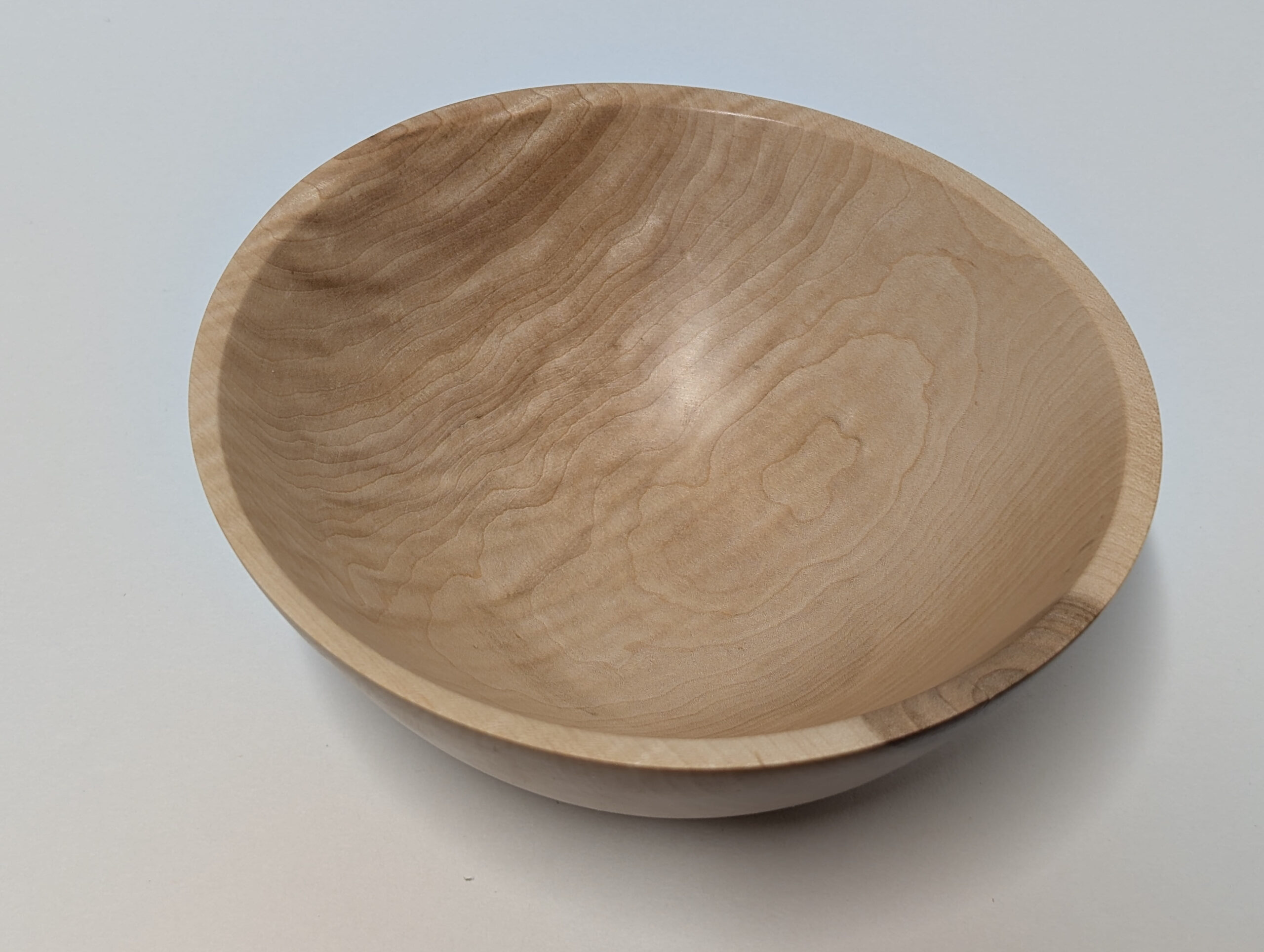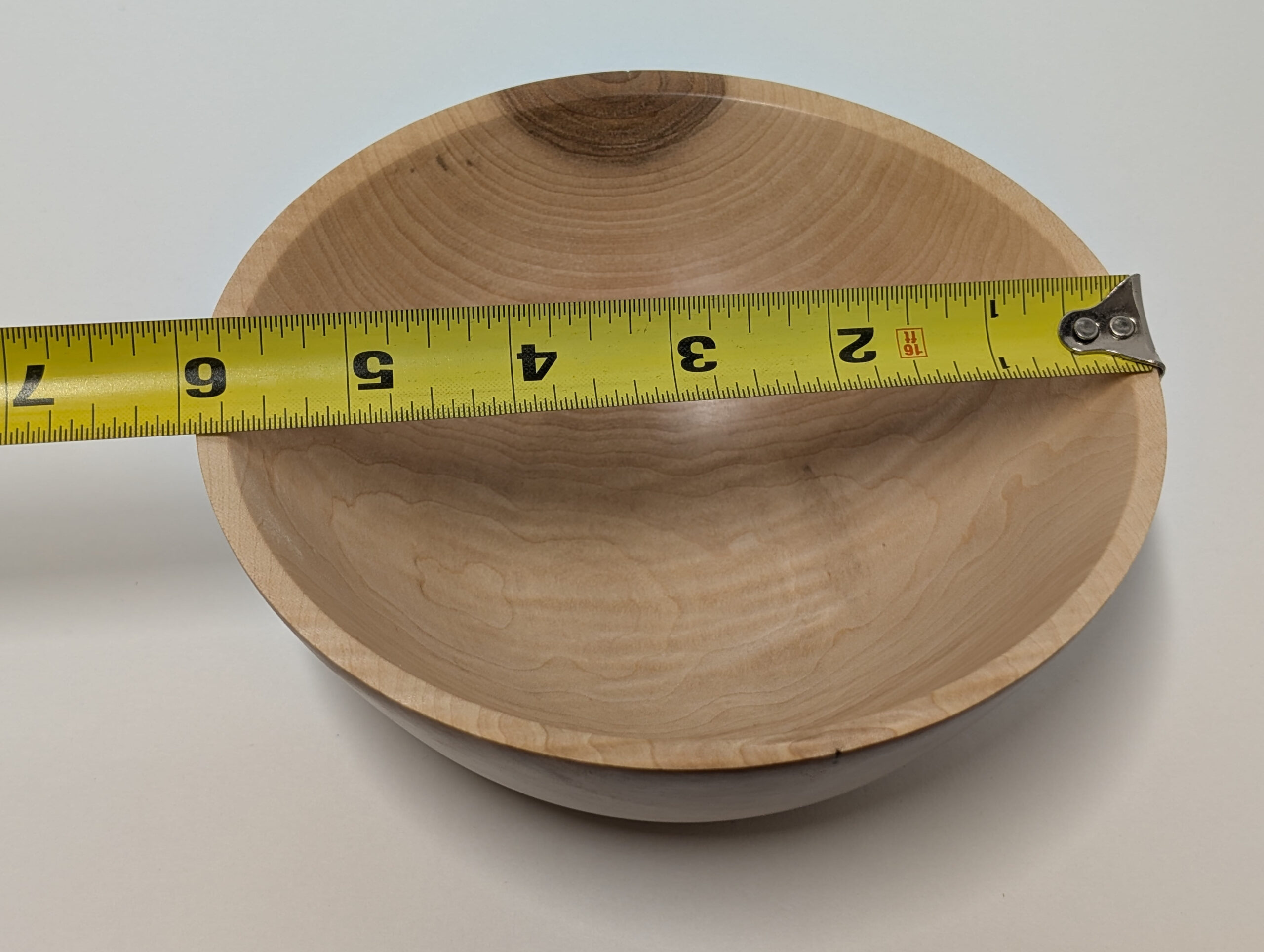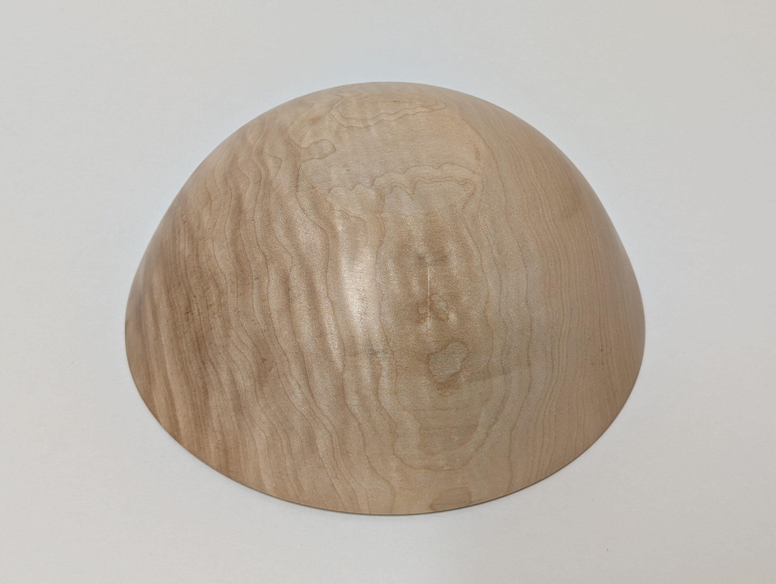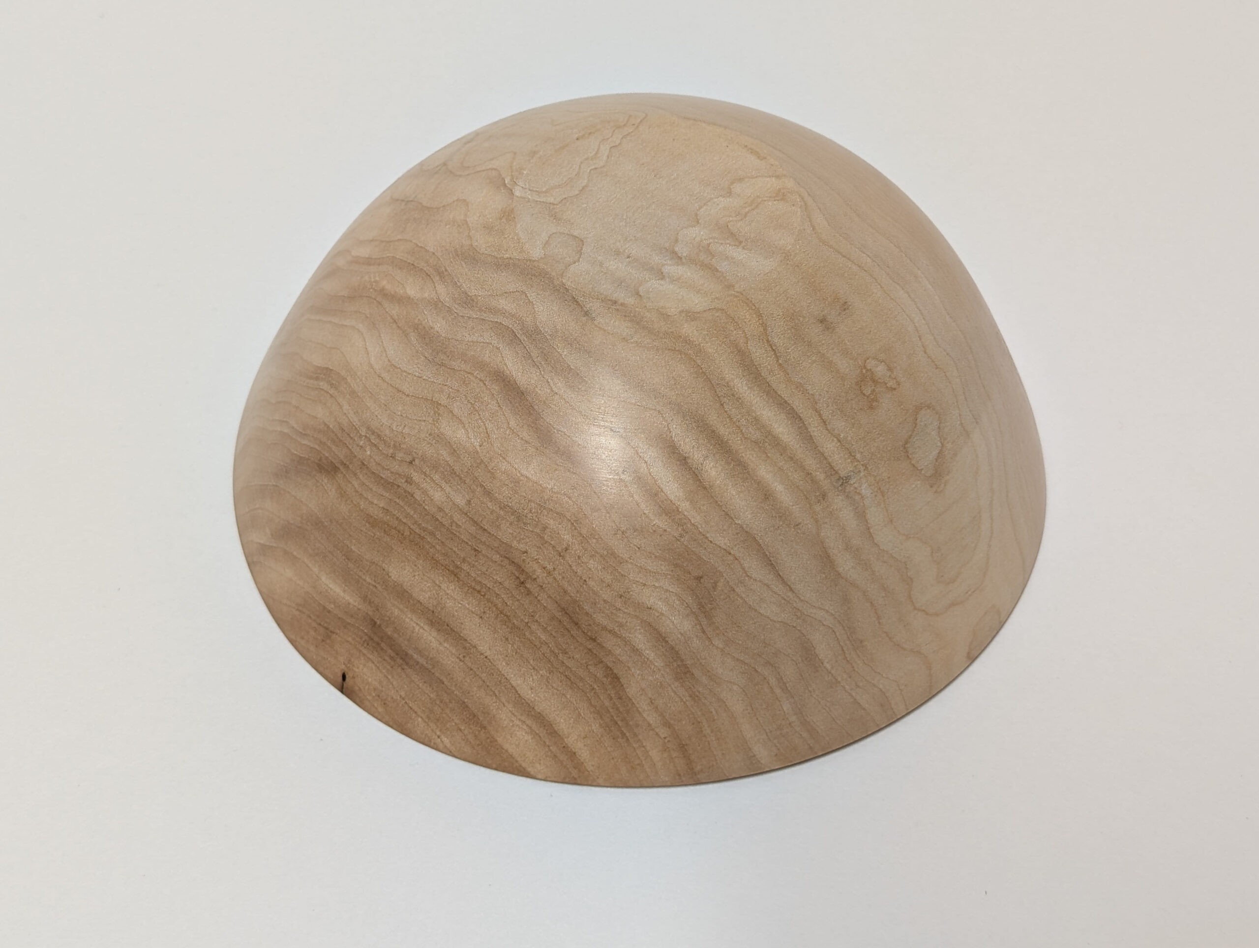 Maple wood bowl. Dimensions: Approximately 5.875 inches in diameter, and 2.375 inches in height. Finished with walnut oil and carnauba wax.