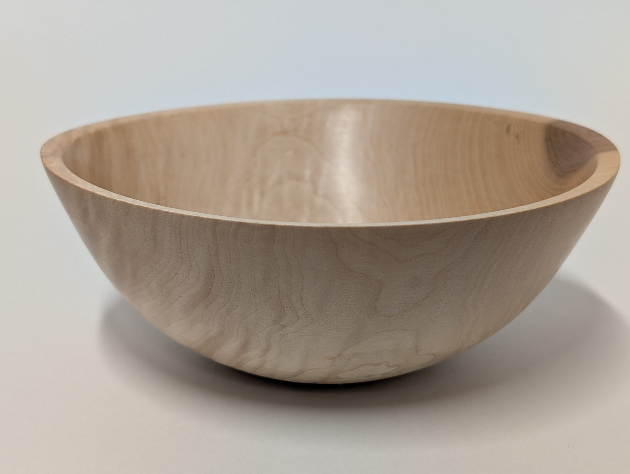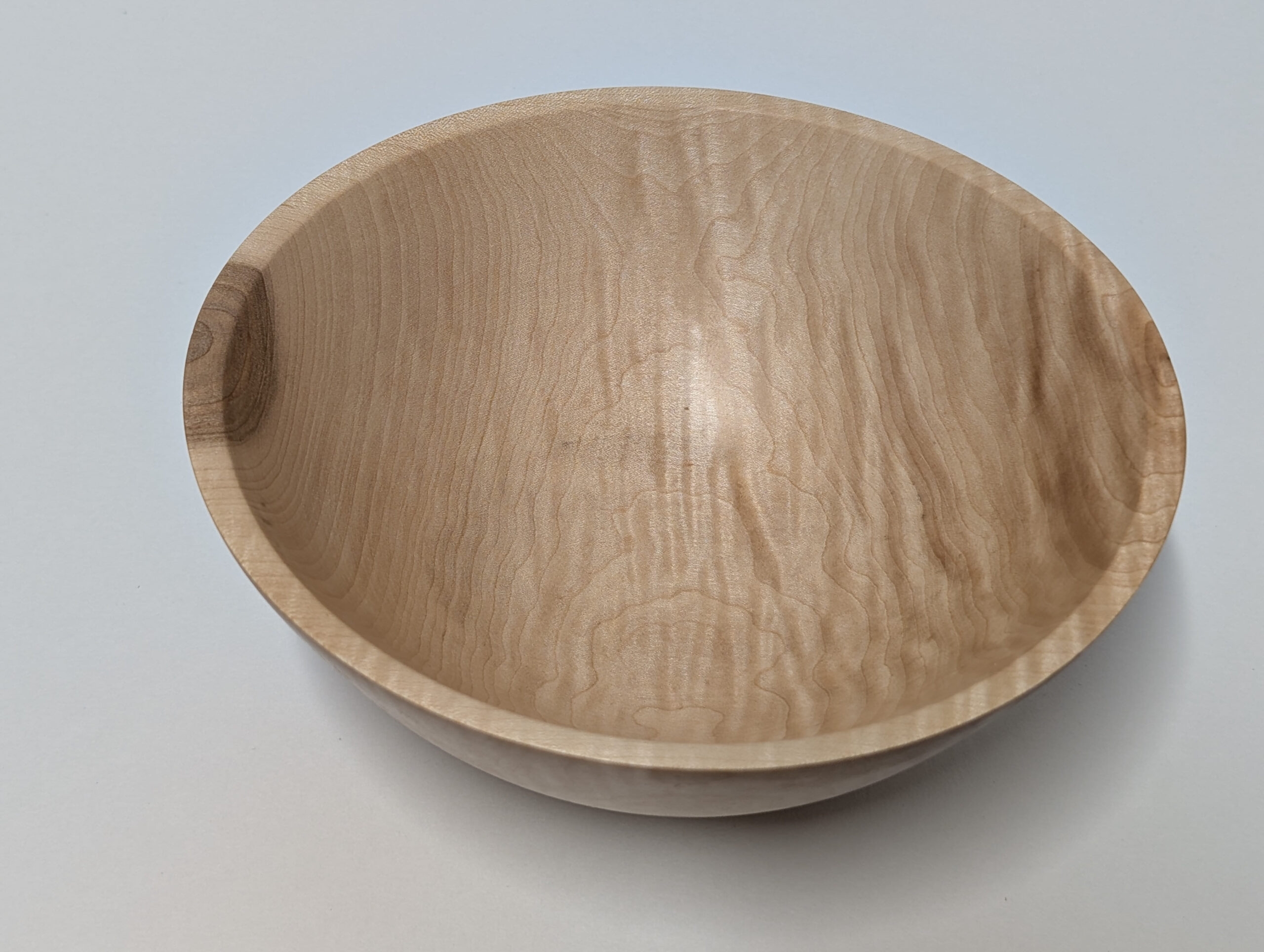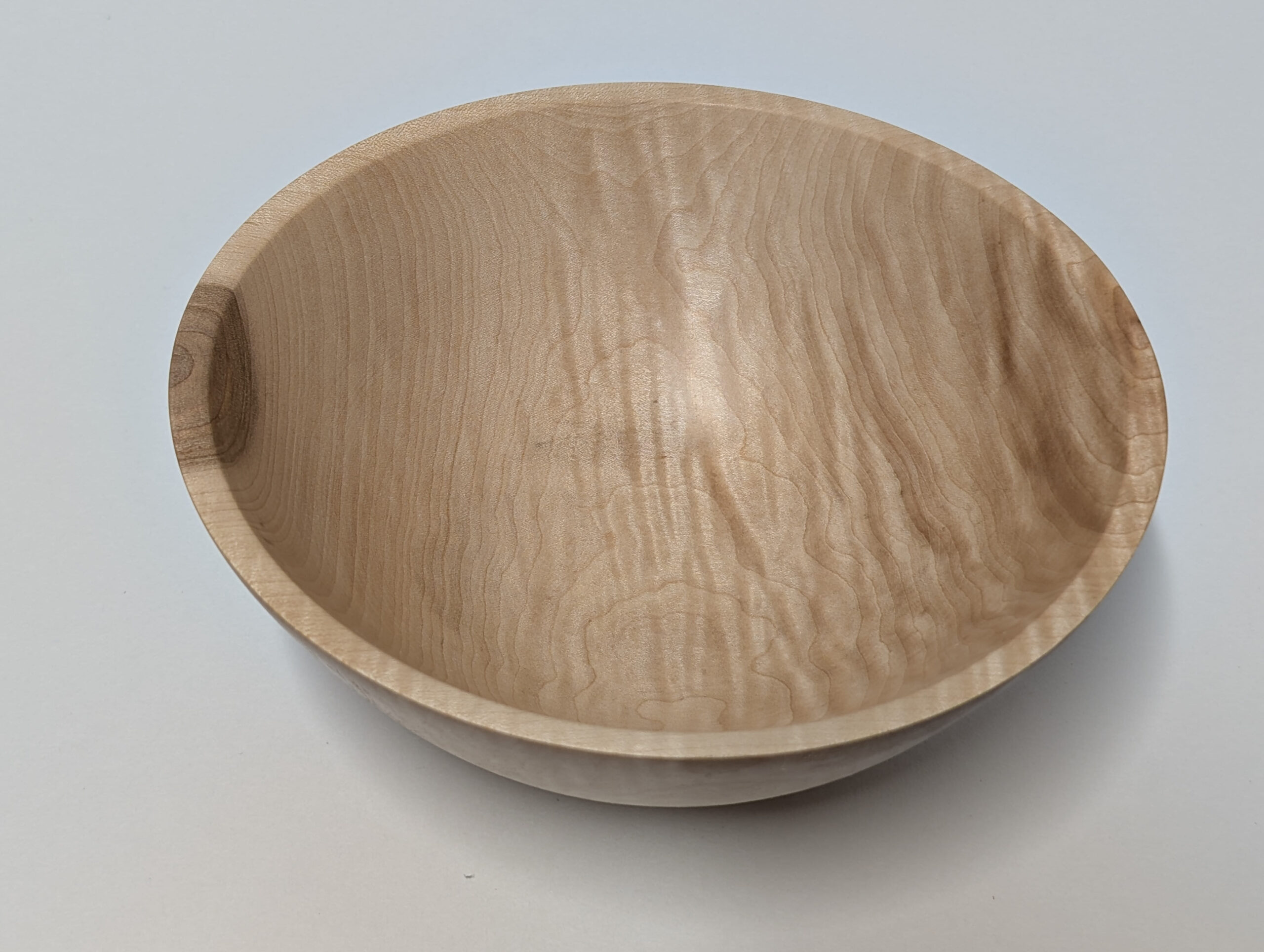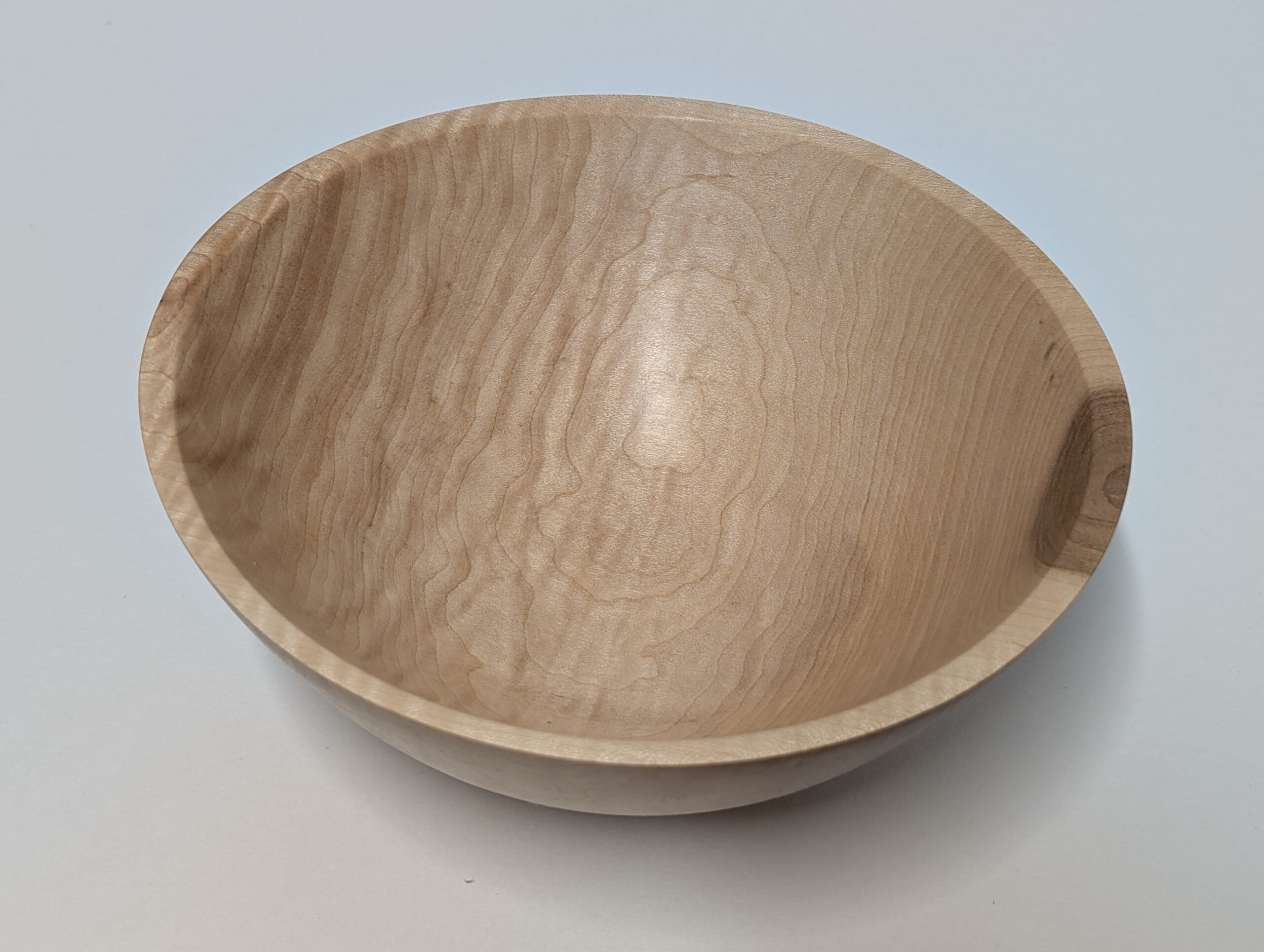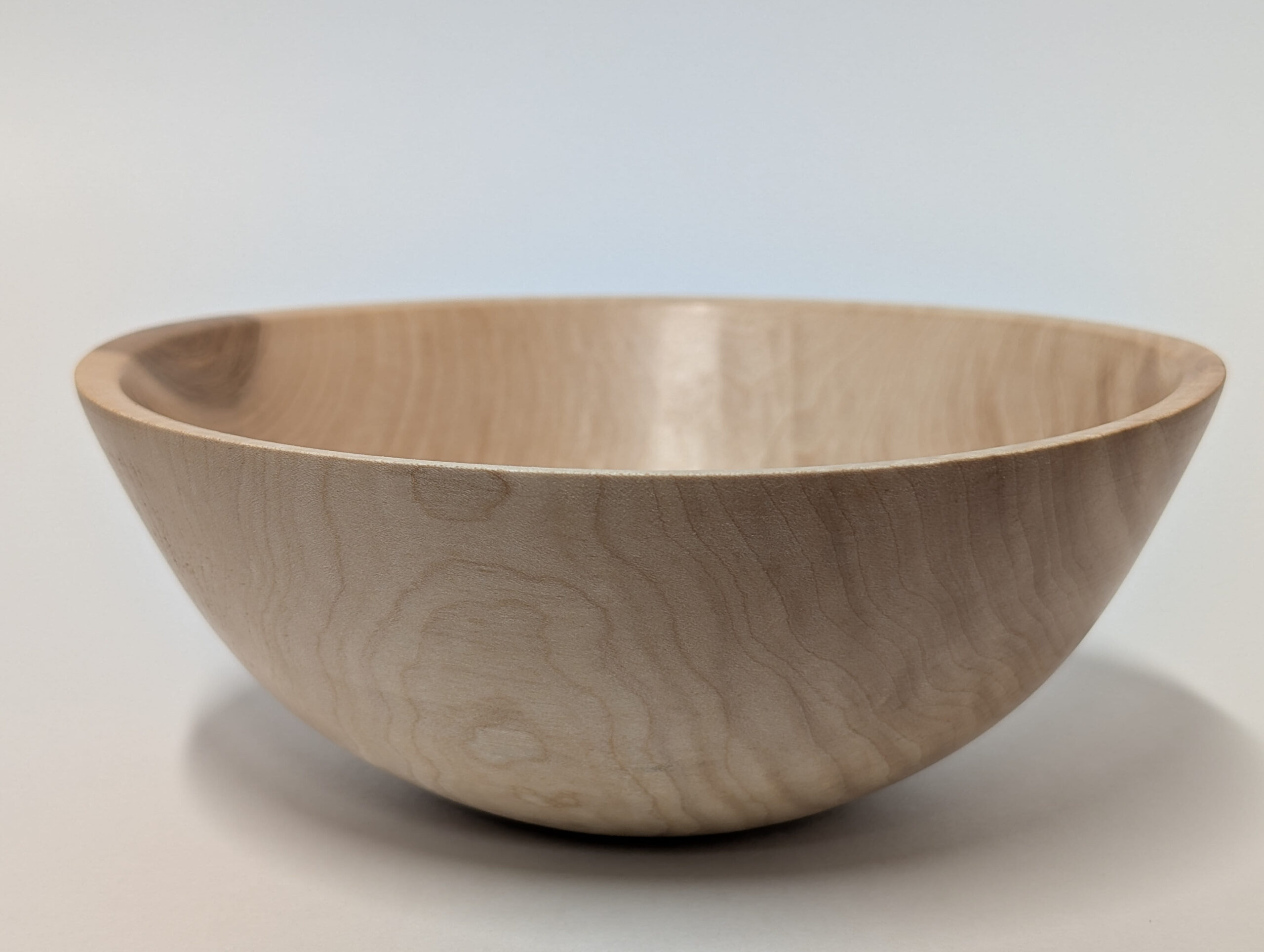 Maple wood bowl. Dimensions: Approximately 5.875 inches in diameter, and 2.375 inches in height. Finished with walnut oil and carnauba wax.