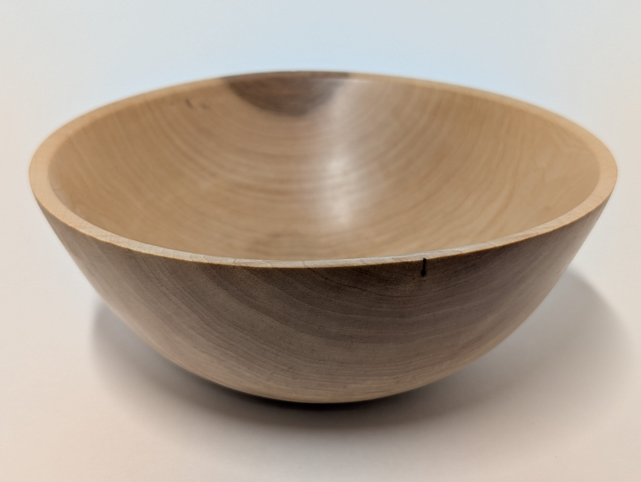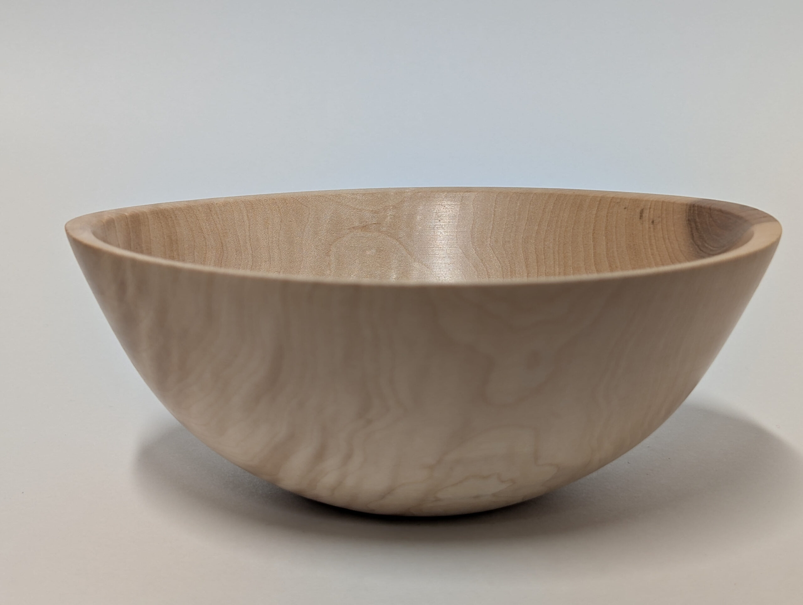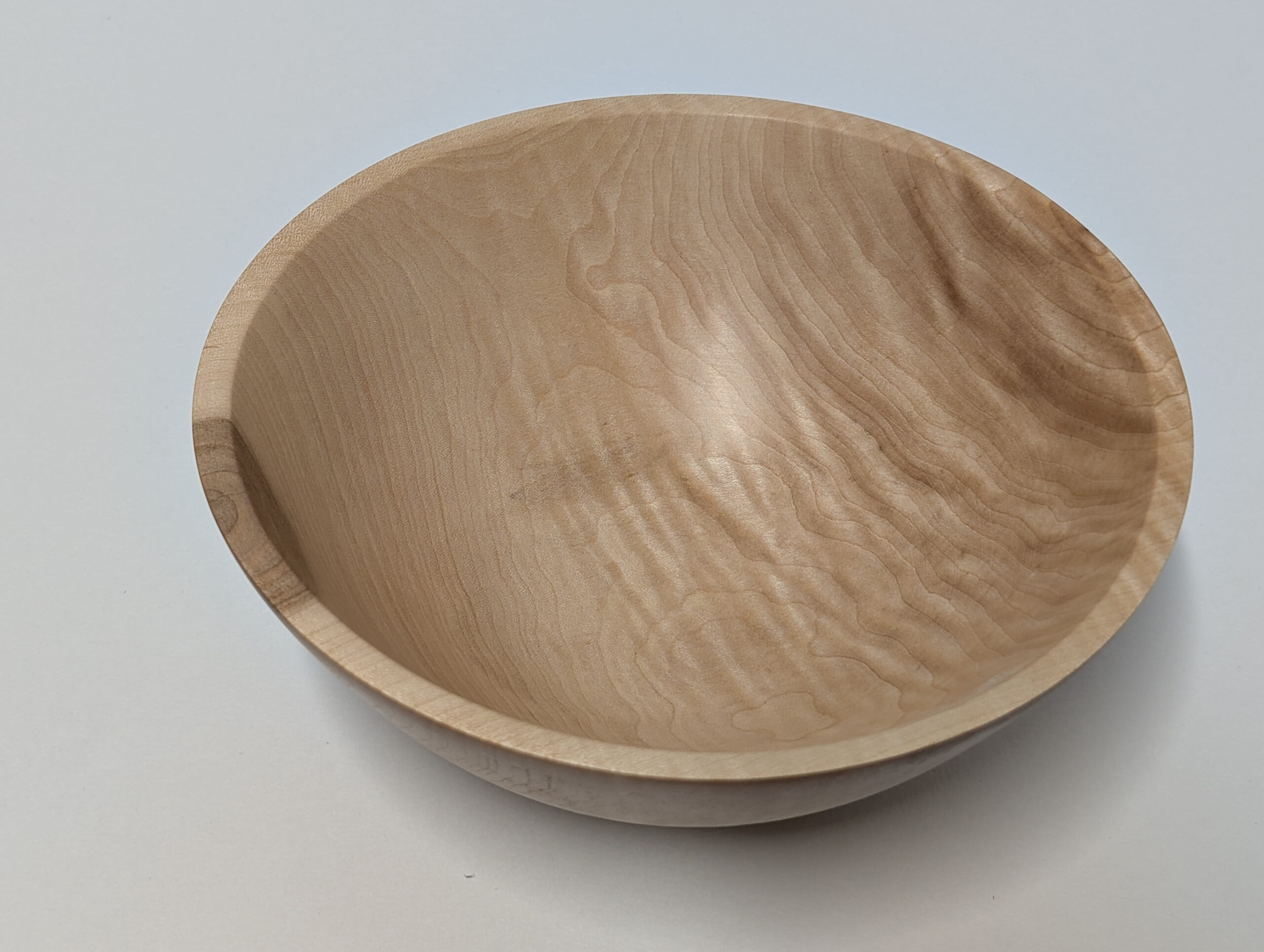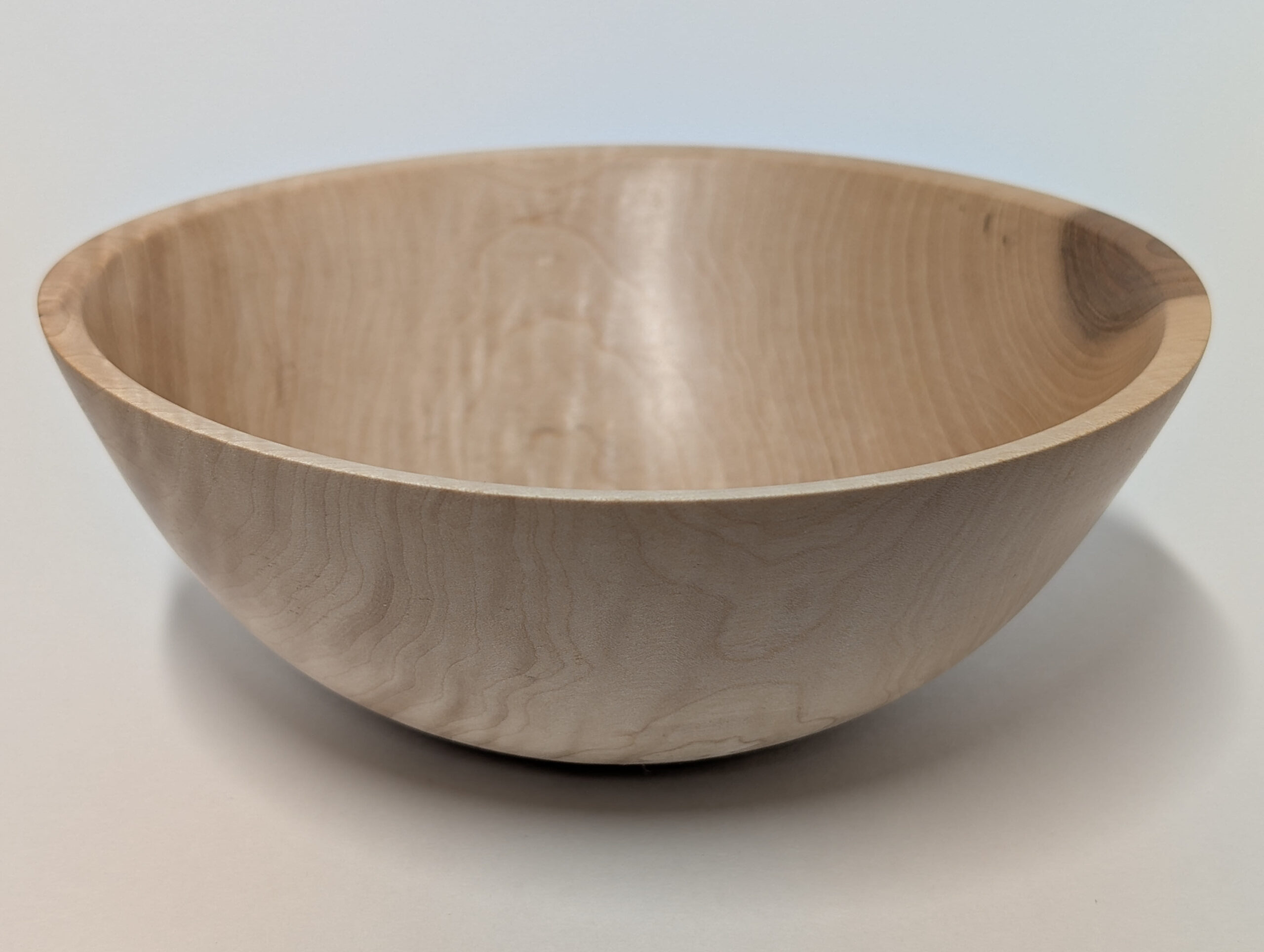 Maple wood bowl. Dimensions: Approximately 5.875 inches in diameter, and 2.375 inches in height. Finished with walnut oil and carnauba wax.