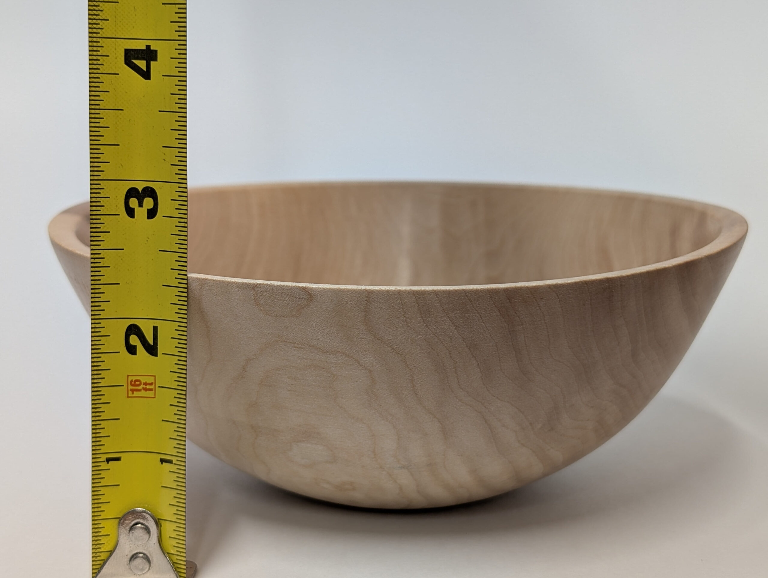 Maple wood bowl. Dimensions: Approximately 5.875 inches in diameter, and 2.375 inches in height.